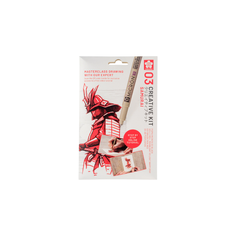 Crea la tua illustrazione dall'inizio alla fine con questo completo Sakura Creative Kit. Segui l'artista nel video tutorial gratuito incluso!